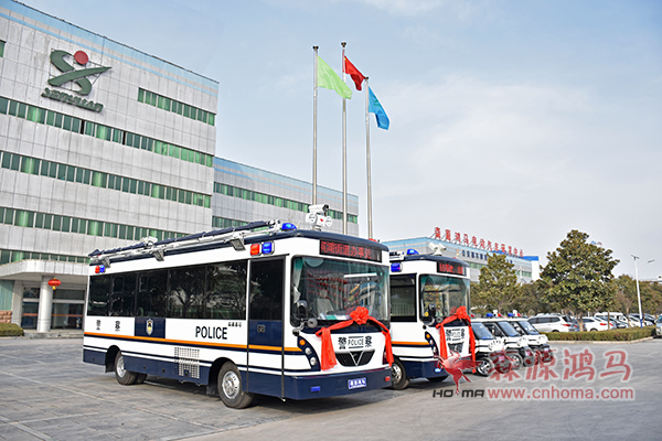 2月22日下午,在森源鴻馬公司舉行安徽合肥8米警務(wù)方艙、6米移動警務(wù)室和3臺小精靈巡邏車的發(fā)車儀式。