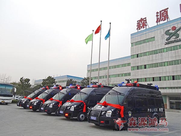 3月11日上午,在森源鴻馬公司舉行新疆和田市公安局5臺防暴運兵車發(fā)車儀式。
