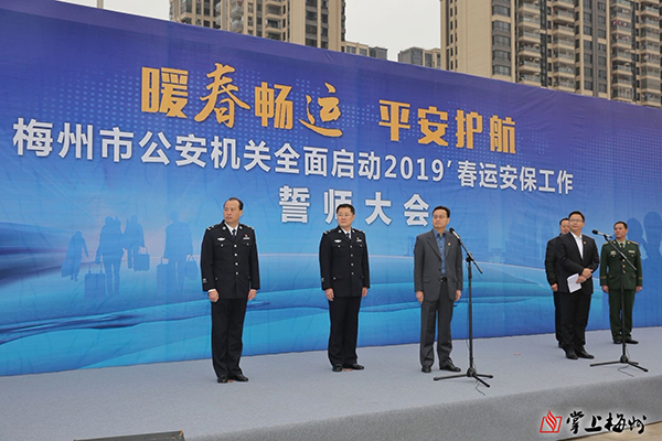 今日上午,“暖春暢運(yùn).平安護(hù)航”——梅州市公安機(jī)關(guān)全面啟動(dòng)2019`春運(yùn)安保工作誓師大會(huì)在市公安局舉行,市委副書記、市長(zhǎng)張愛(ài)軍,市委常委、宣傳部部長(zhǎng)陳曉建,副市長(zhǎng)、市公安局局長(zhǎng)寧惠軍等參加活動(dòng)。