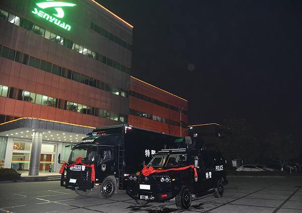 1月19日,廣東茂名通過公安部警采中心采購(gòu)的裝甲防暴車和裝備運(yùn)輸車在森源鴻馬發(fā)車。